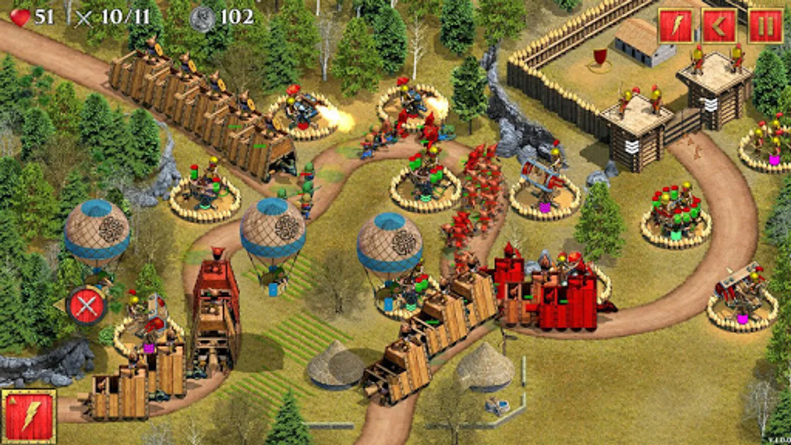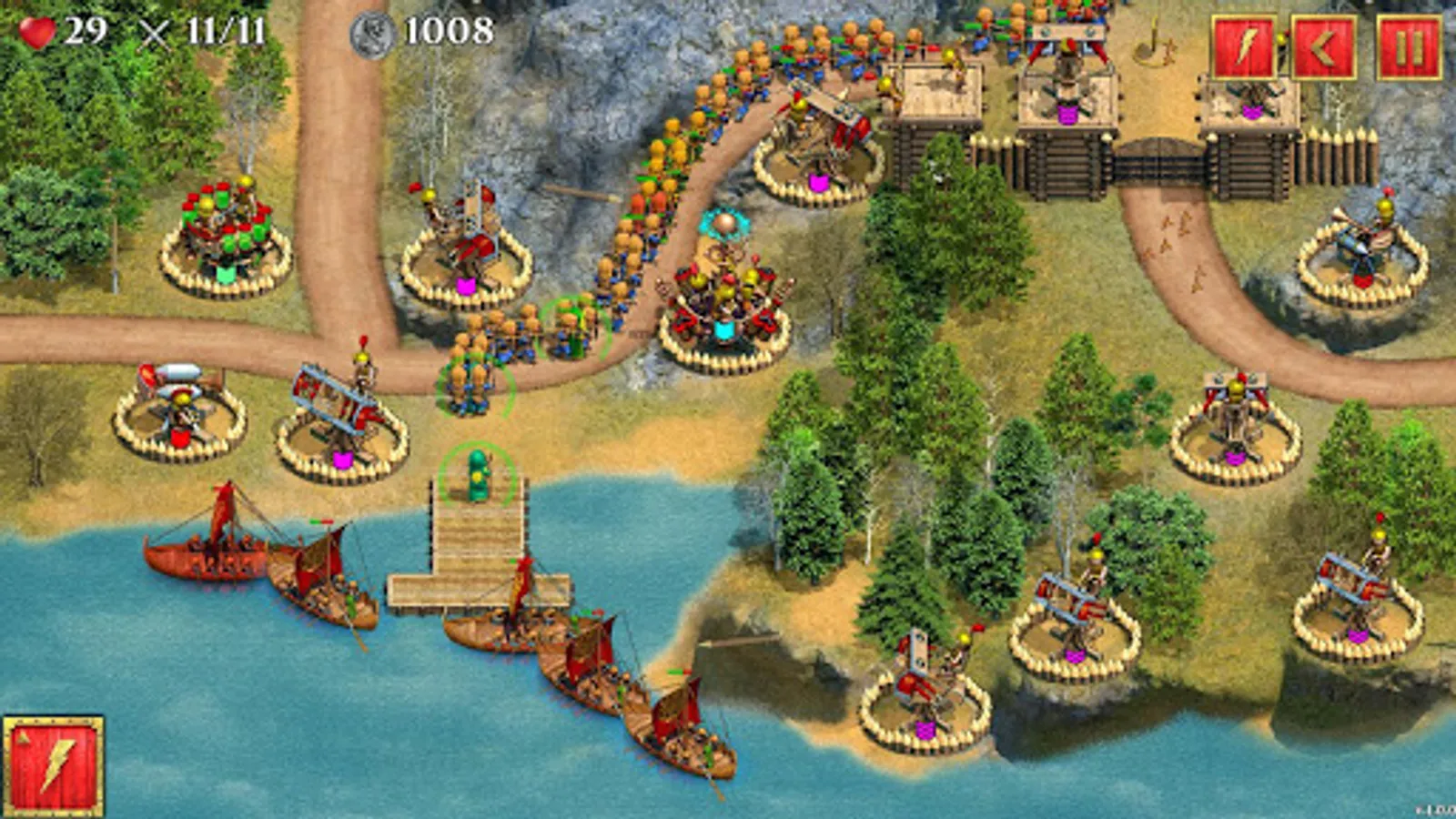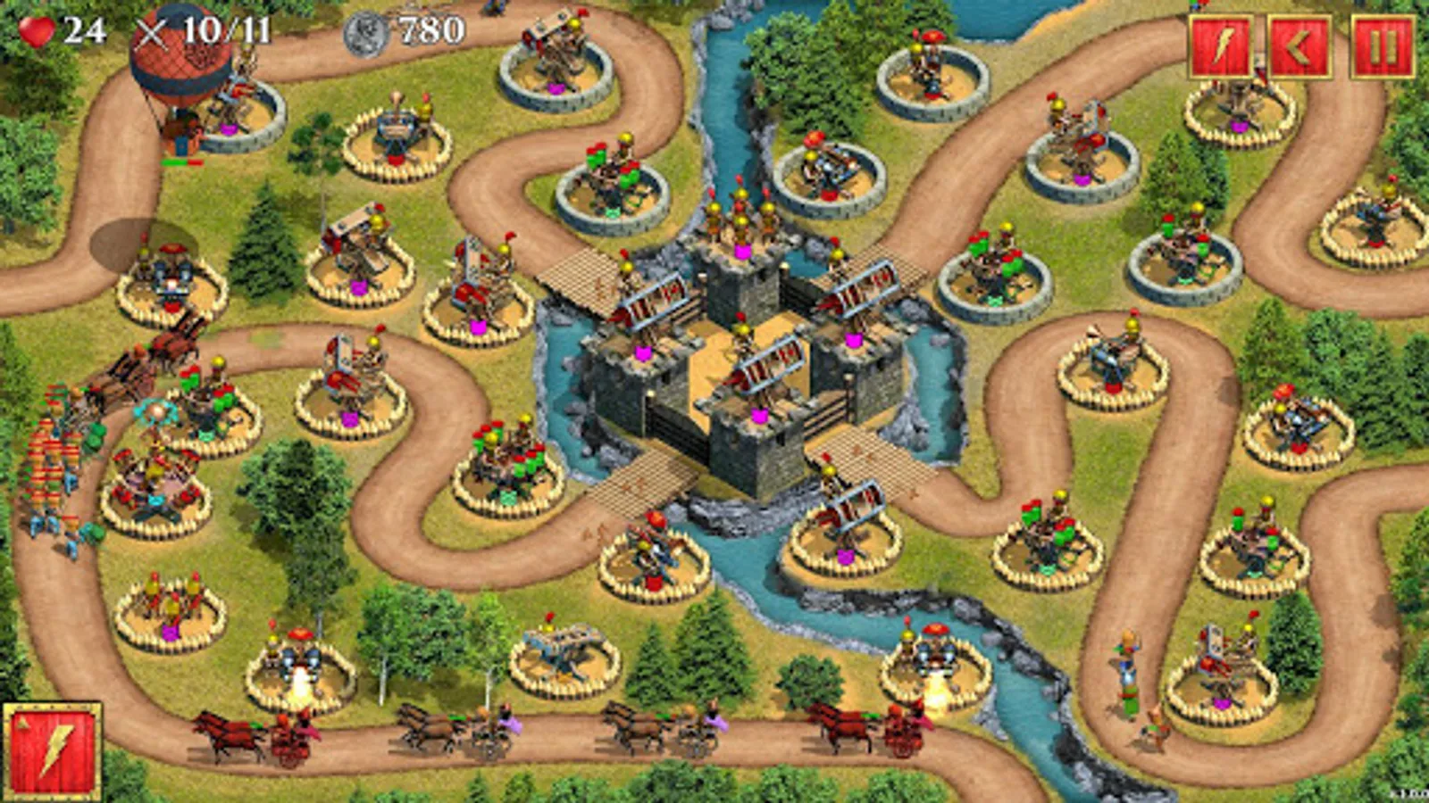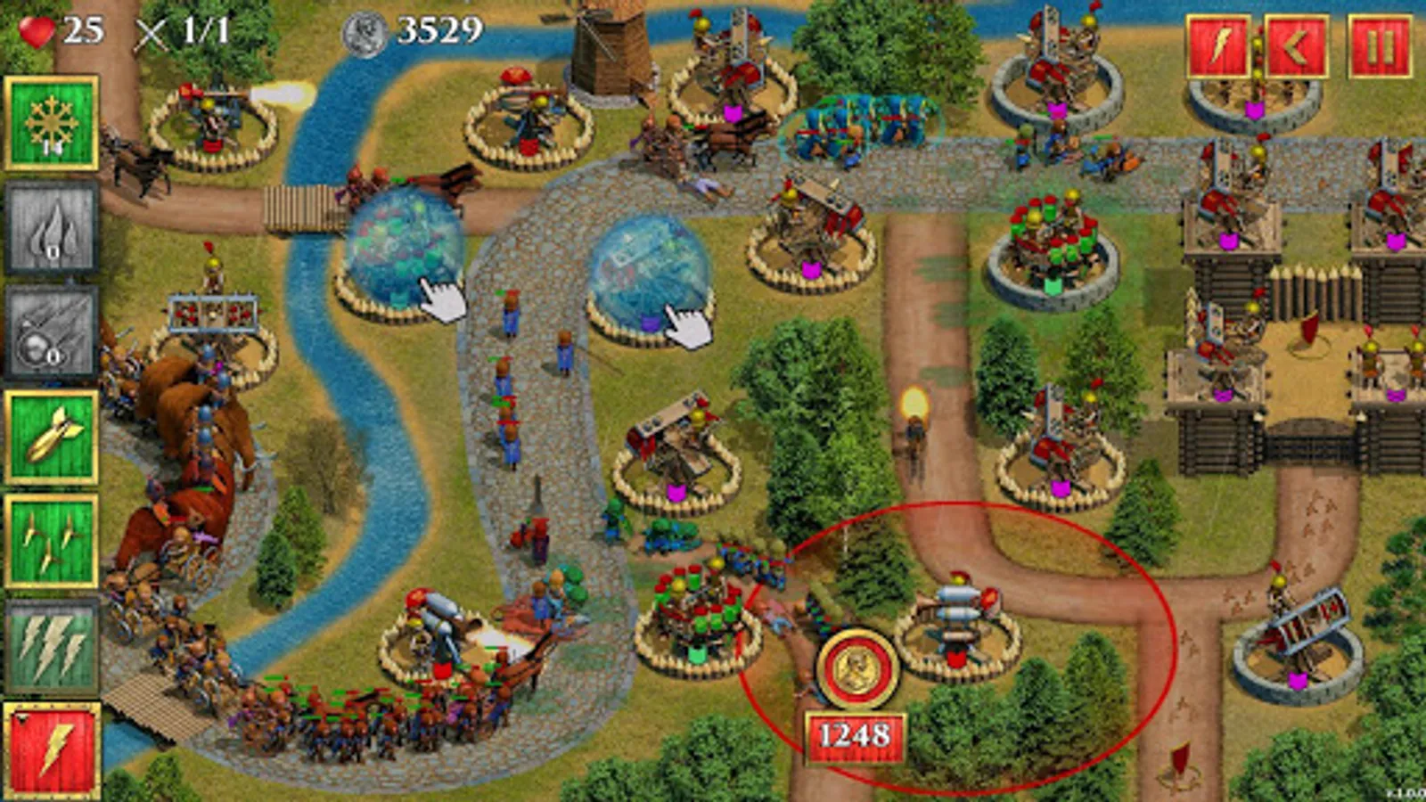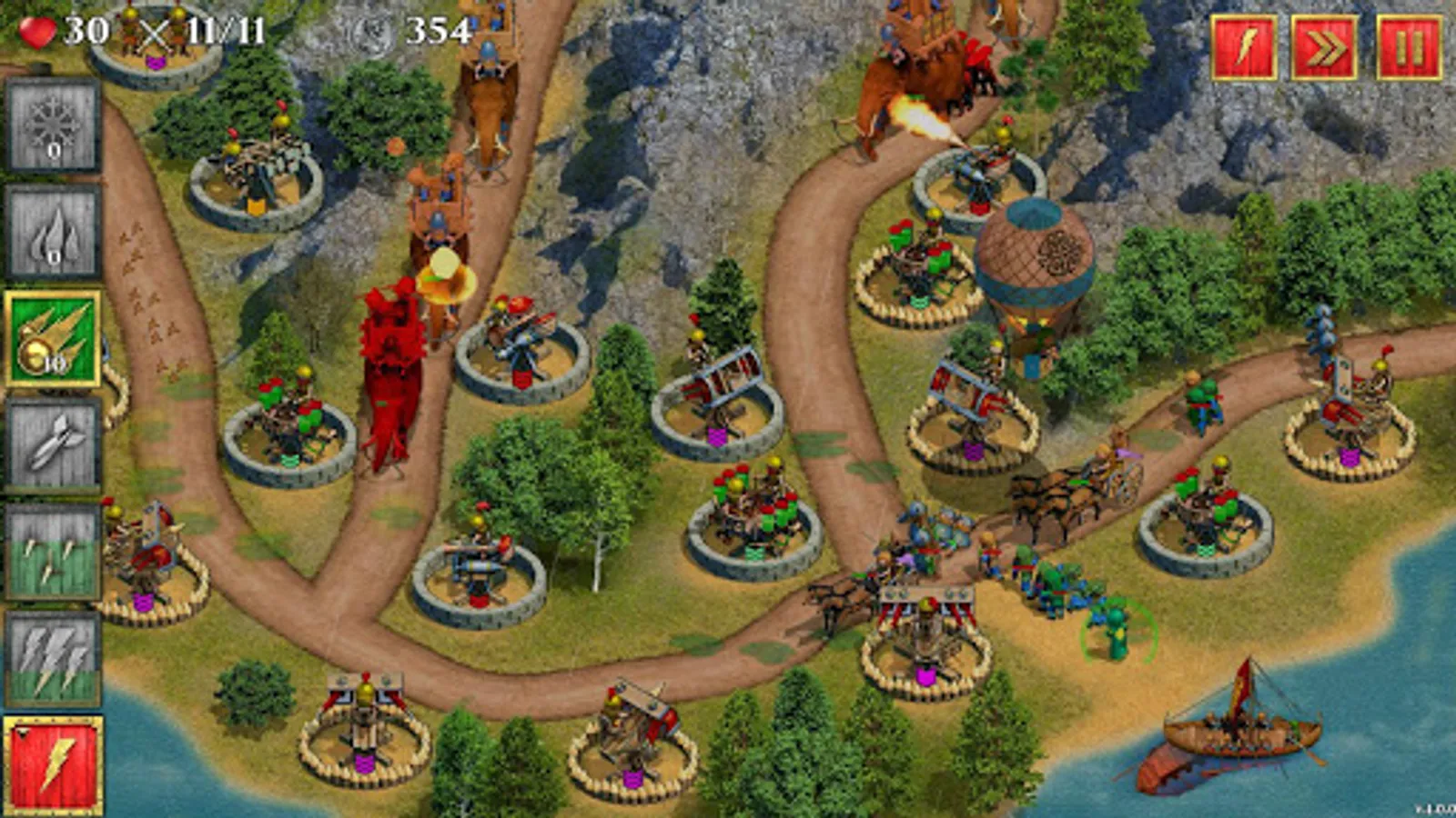 - Ability to personally control the battles, using grenades, bombes, Tribolos, lightnings, Greek fire, poisonous gas, frost, and meteor rain