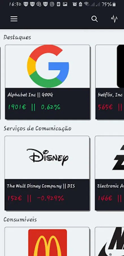 EMarket is a simulation application that allows you to simulate a series of movements, such as investing, selling, consulting, and managing stocks. Its main functionality is related to the security and simplicity of access, through an innovative technology that is in a growing phase, NFC - Near Field Communication. The login to the application is done by touching an NFC "tag", associated with the consumer's access credentials, to the mobile phone.