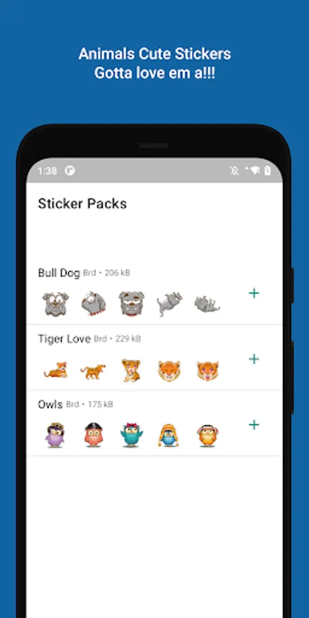 Animals Cute Sticker App provides good quality stickers of dogs, tigers and owls which are cute and lovable for WhatsApp(WASticker). Animals Cute Sticker App is free and help to make the conversation more cute, funny and more interesting to chat with your Best Friends, Colleagues and loved ones.