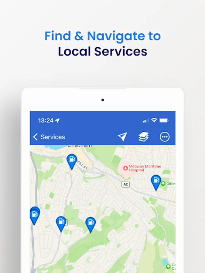 Furthermore, our app harnesses built-in GPS systems to pinpoint relevant locations, offering directions to various driver-centric services, including: