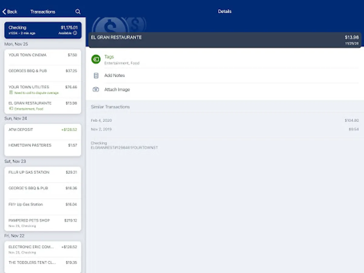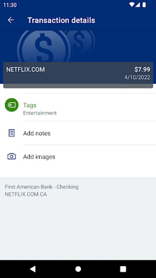 Keep your transactions organized by allowing you to add tags, notes and photos of receipts and checks