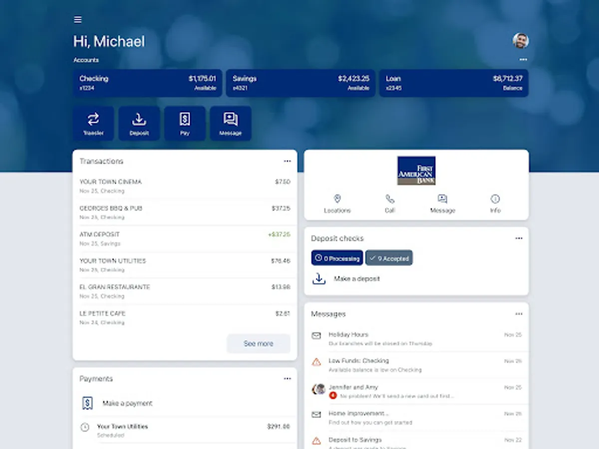 Here’s what you can do with the First American Bank mobile app: