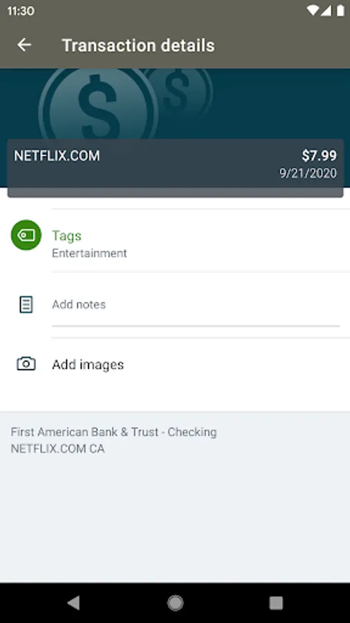 • Keep your transactions organized by allowing you to add tags, notes and photos of receipts and checks.