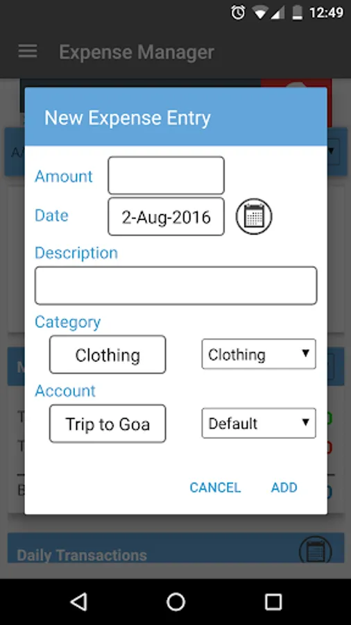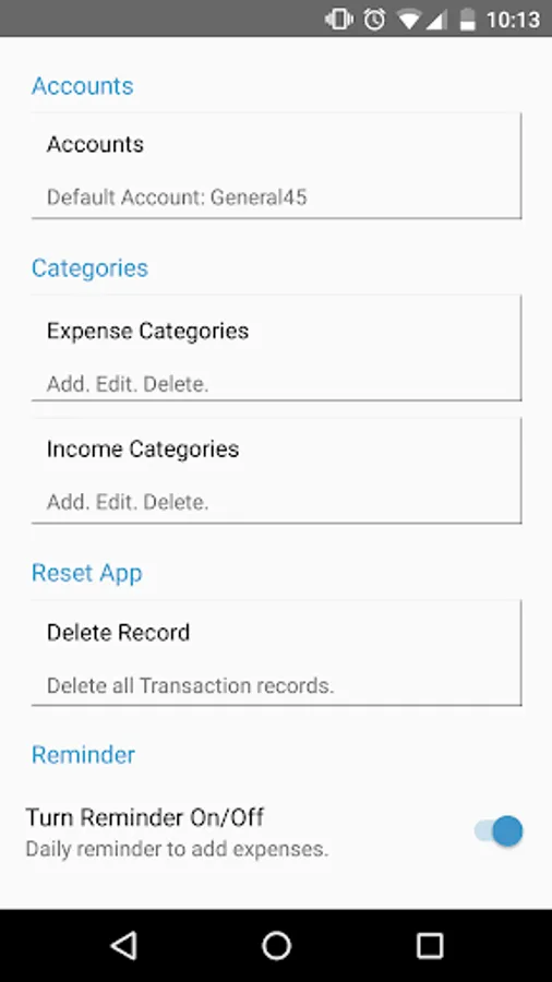 -Get a reminder to fill in your daily transactions.