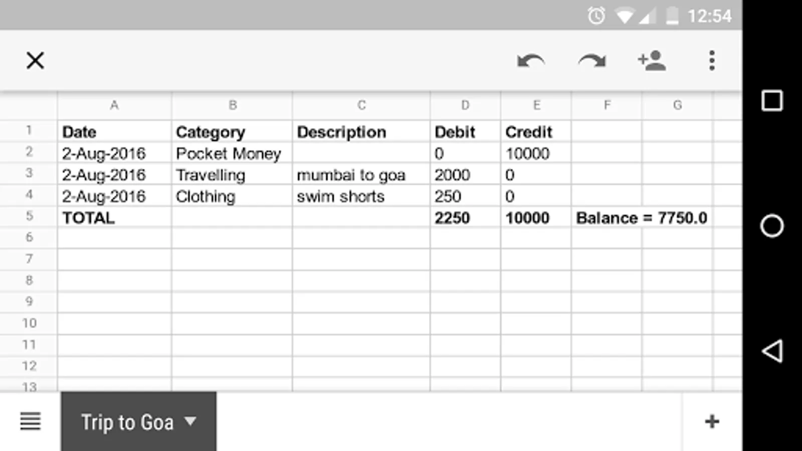 -Add any number of expense or income categories as desired.