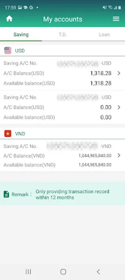 ●Manage your bank accounts: Saving account inquiry, time deposit account inquiry, loan details.