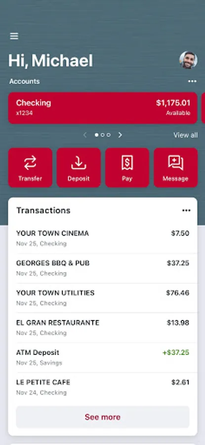 • Deposit checks in a snap by taking a picture of the front and back.