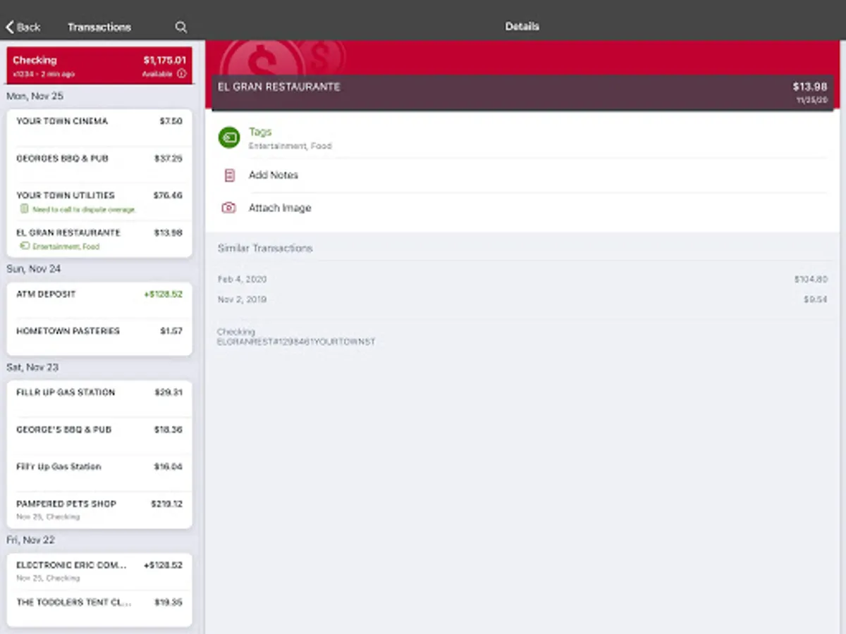 • Stay on top of your transactions and keep them organized by adding tags, notes, and photos of receipts and checks.