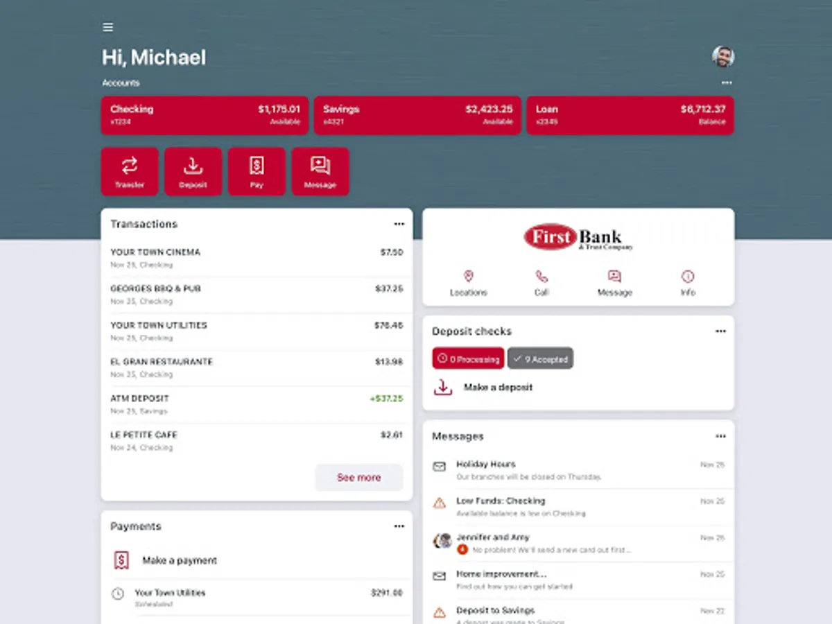 Here’s what you can do with the First Bank and Trust Company app: