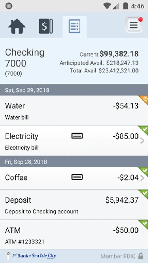 • View recent transactions, including check images