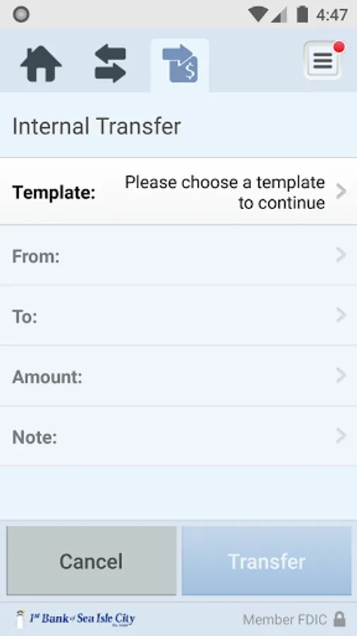 • Transfer money between accounts