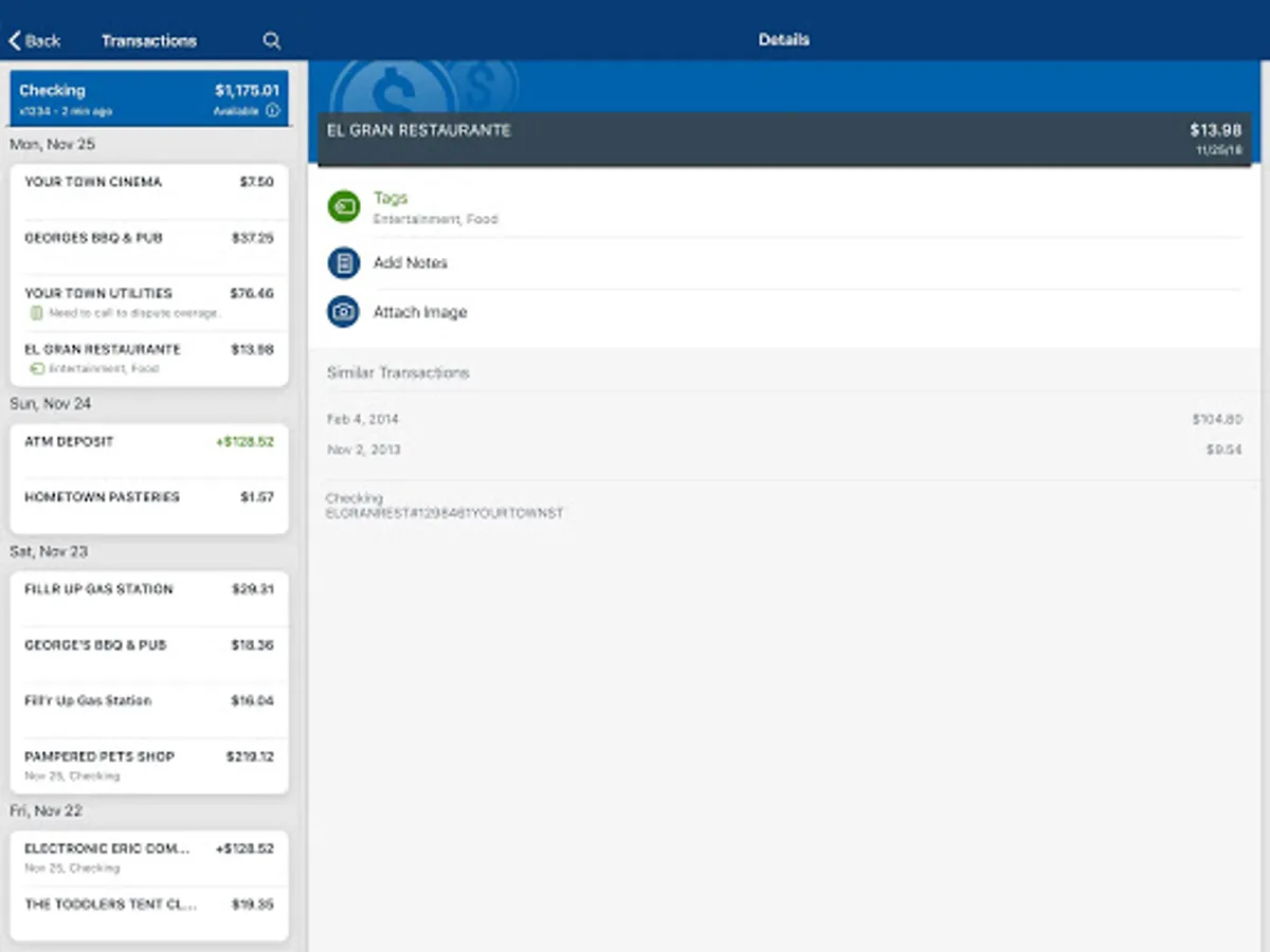 Keep your transactions organized by allowing you to add tags, notes and photos of receipts and checks.