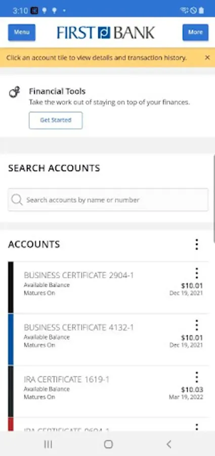 TRANSFER MONEY: Transfer funds between your First Bank accounts and send money to and request money from external accounts.