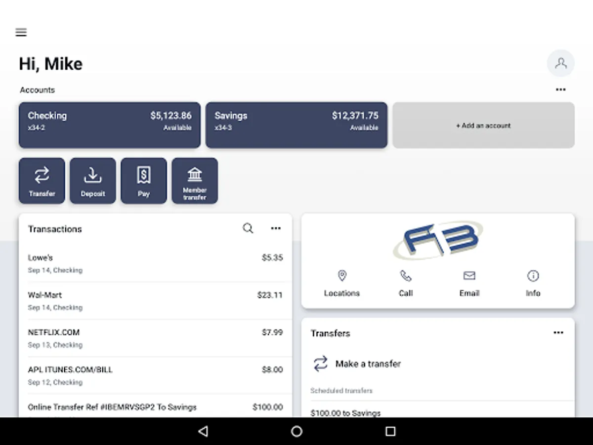 Simplify your life and stay in control with First Basin Mobile for your Android devices. View account history, transfer funds, deposit checks and pay bills all within the app.
