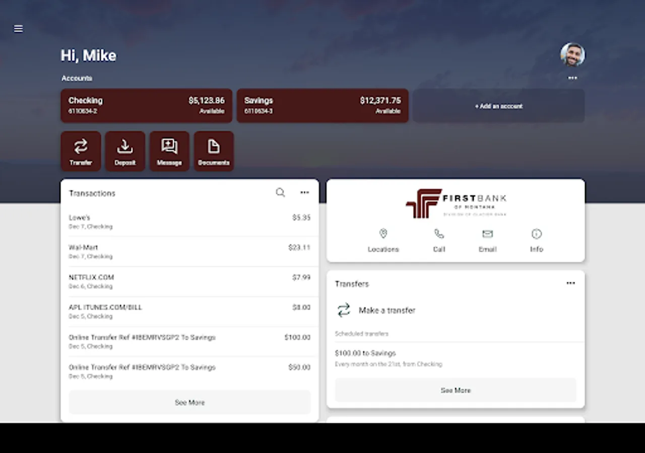 First Bank of Montana's mobile app is fast, convenient, and reliable. Manage your money and your business with these features and more:
