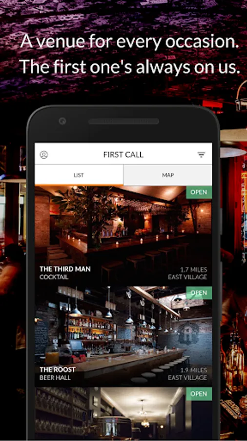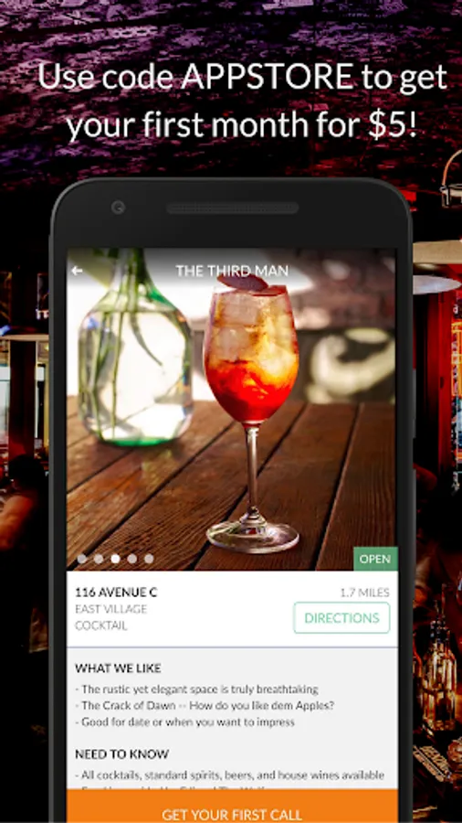FirstCall - Discover New York's best bars and save by getting your first drink on the house.