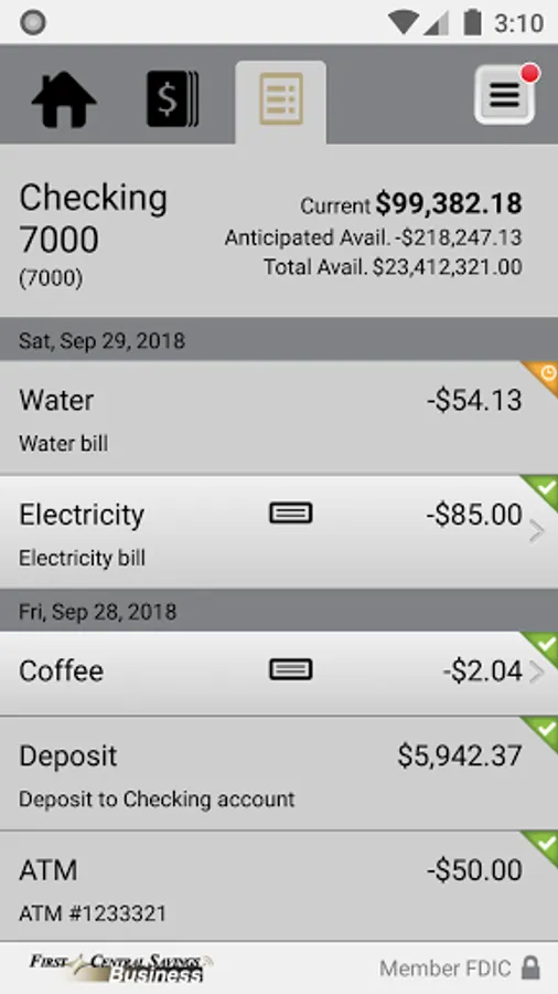 Getting Started: First Central Savings Business is available for customers currently enrolled in business online banking. To enroll, please visit anyone of our branch locations and speak to a business development officer then download our free app today. It’s that easy!