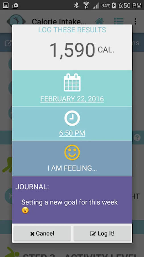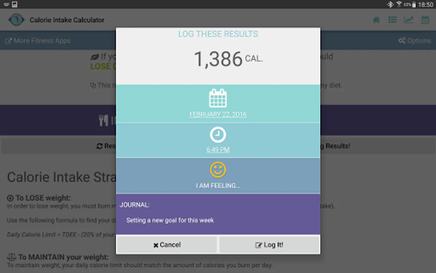 ★ Calorie Calculator Tracking (log your calorie limit results)