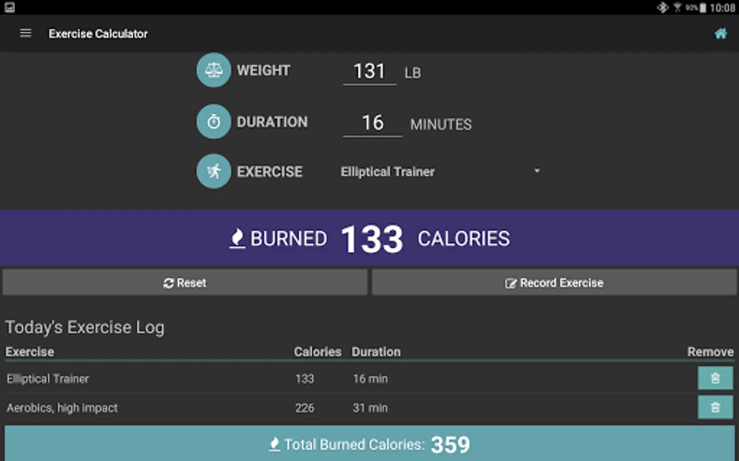 Exercise Calorie Calculator Screenshots