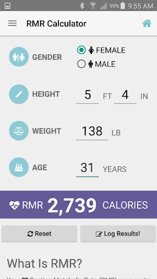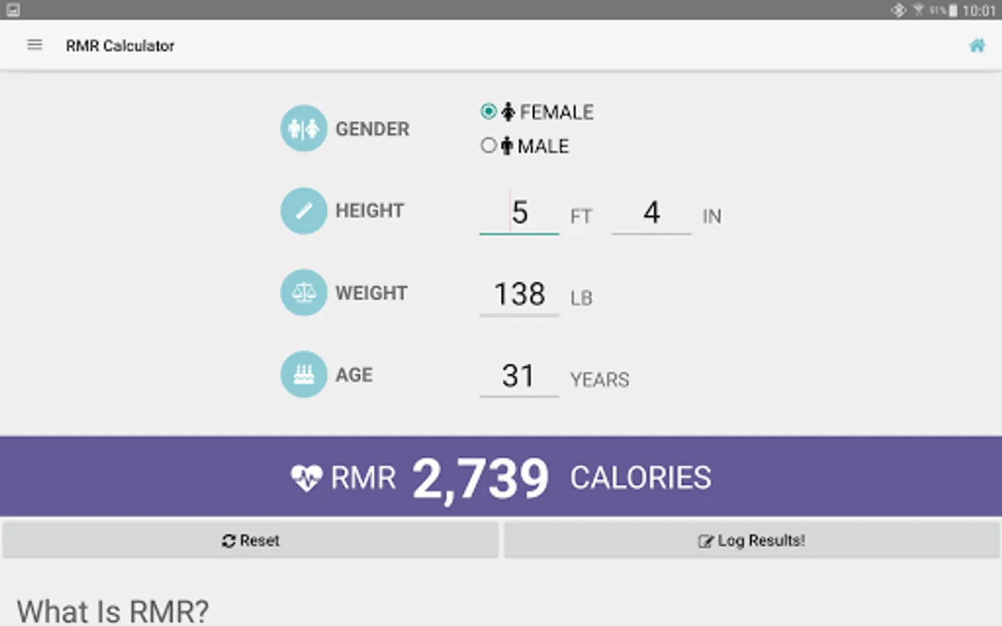 Find and track your RMR (Resting Metabolic Rate) with this easy to use calculator & tracker.