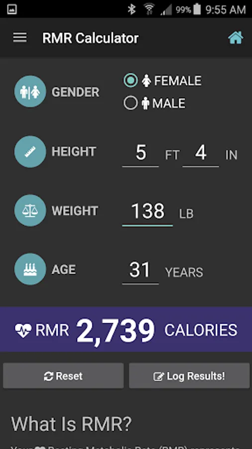 As an additional feature to the basic RMR calculator, you can log and then track your entries!