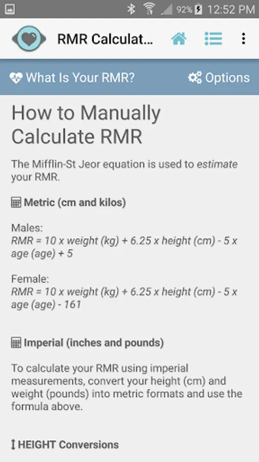 This includes general information on how to manually calculate your RMR by using either metric or imperial measurement’s, along with general tips.