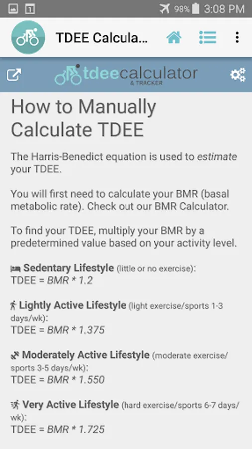 This includes general information and instructions on how to manually calculate your daily energy expenditure.