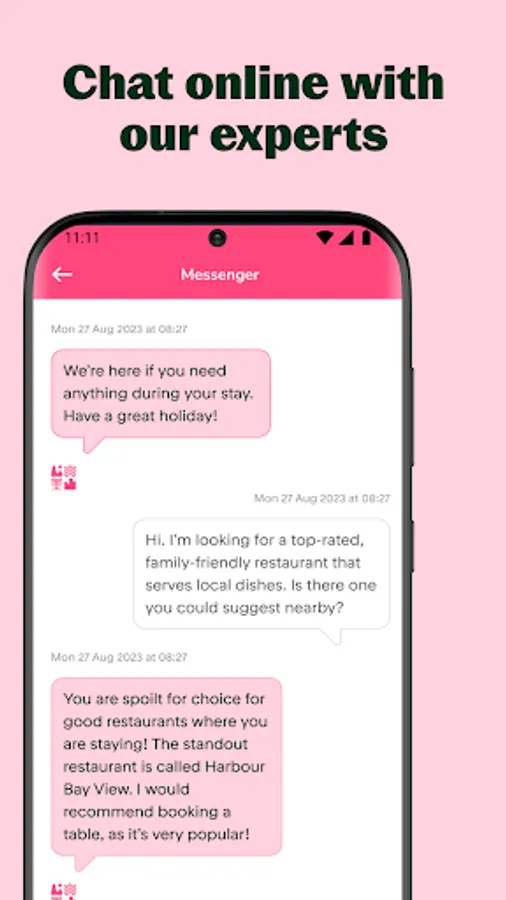 With our fully digital service, we’re always on hand to help while you’re away on your trip. The in-app chat will connect you with our team 24 hours a day, seven days a week, so you can ask about local experiences, check on transfer and flight times, or report any unexpected issues.