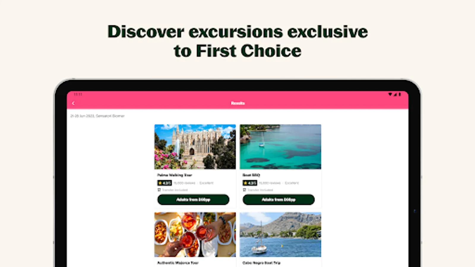 Want to explore like a local? Make the most of your trip with First Choice Experiences – you can browse and book on the app, and check all the important stuff like pick-up info and anything you need to take, such as swimwear or extra cash for tipping. Once your experience is booked, your ticket will be kept in the app (and sent by email, too).