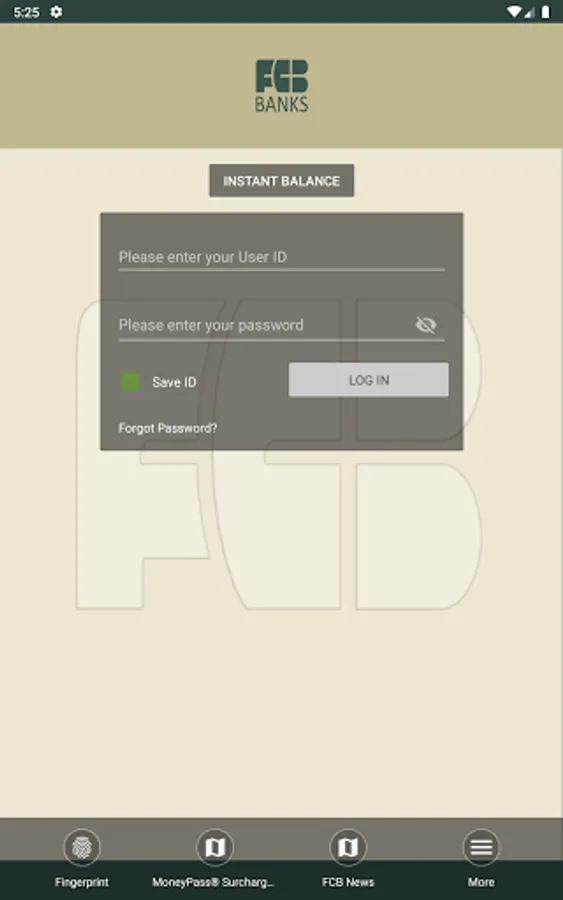 Getting started is easy! Just download the app and have your existing FCB Banks Online Banking Access ID and Password available.