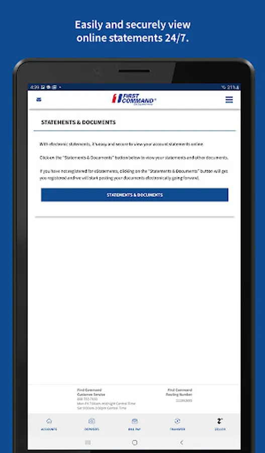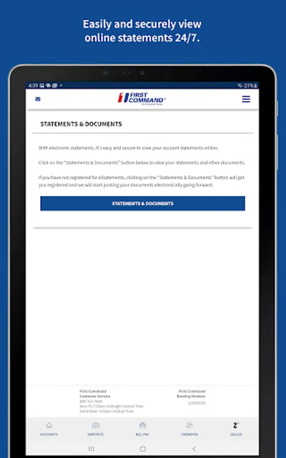 First Command Bank MobileCommand™ allows you to quickly and securely manage your accounts from your mobile device while on the go!