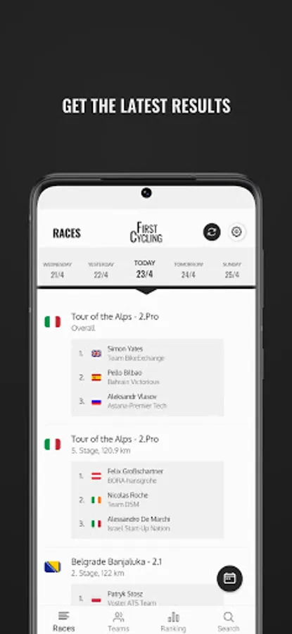 * Select what results you would like to receive push notifications for and be the FIRST to know