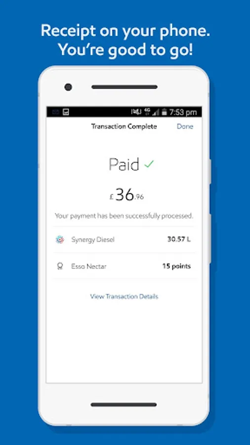 • Pay for petrol or diesel at participating Esso branded stations with PayPal or Apple Pay for quick and secure payment