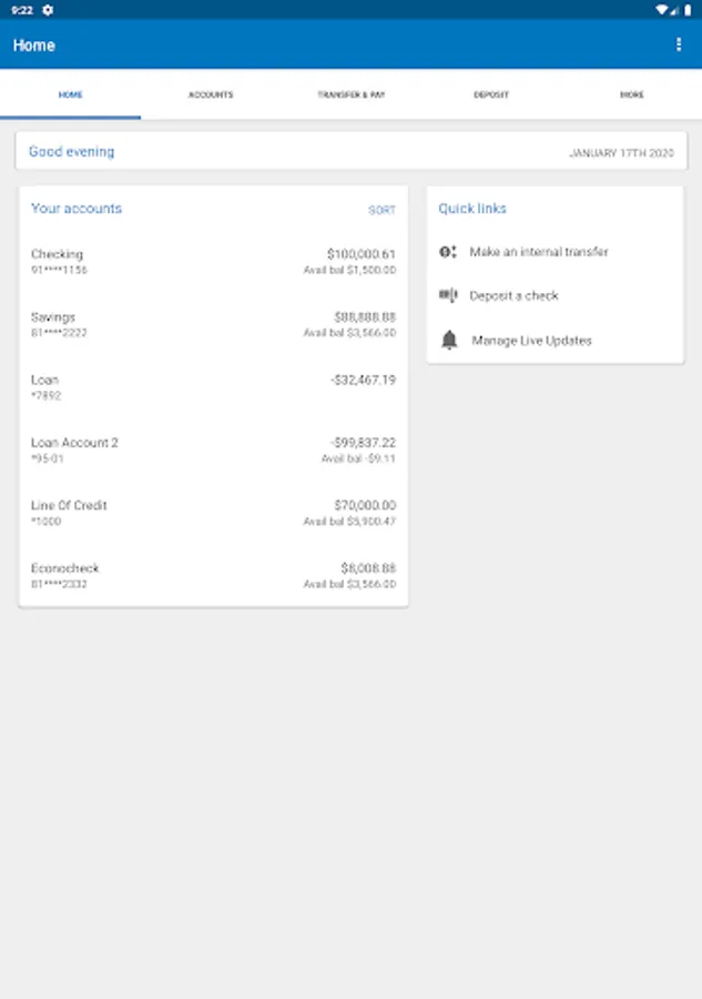 • Deposit checks by taking a picture of the front and back of checks up to $1,000