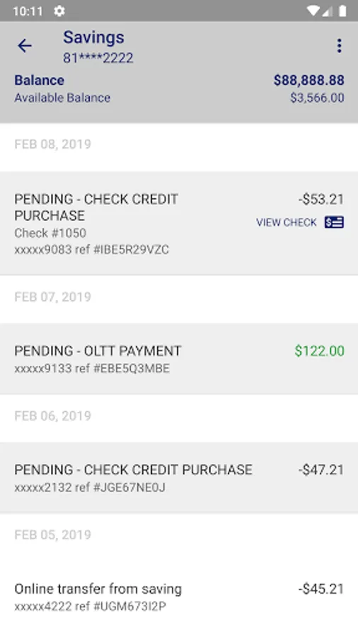 • View recent transactions, including check images