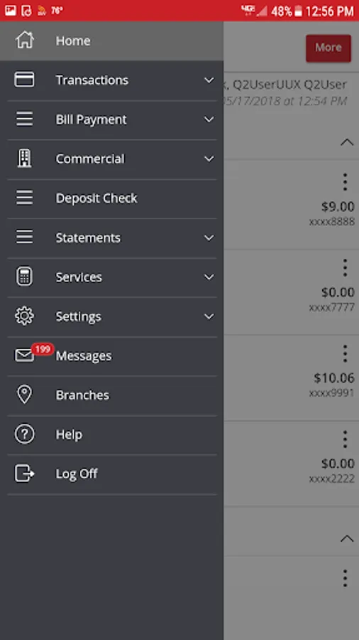 Accounts - Check your latest account balance and search recent transactions by date, amount, or check number.
