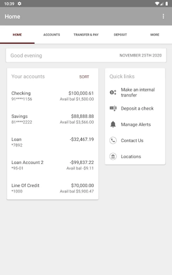 After an easy enrollment through your Online Banking account, securely check account balances, view recent transactions, pay bills, get directions to ATMs or branches, and transfer funds between accounts, all in real time. For smartphones, the display is optimized to fit the device, providing a first-class user experience.