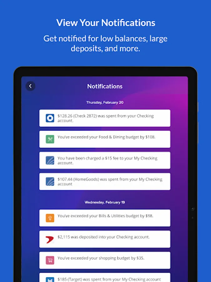 On top of the normal functionality you would expect, like viewing your account history, transferring funds, paying bills, and depositing checks, our new app provides a wide range of convenient features to help manage your personal banking and nurture your financial health.