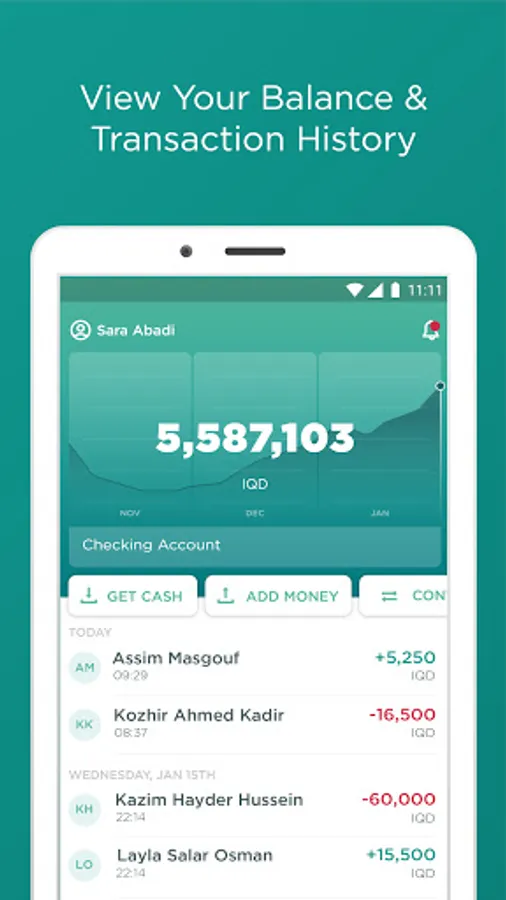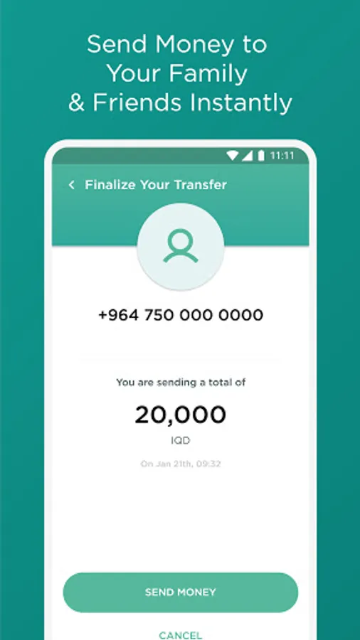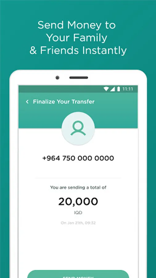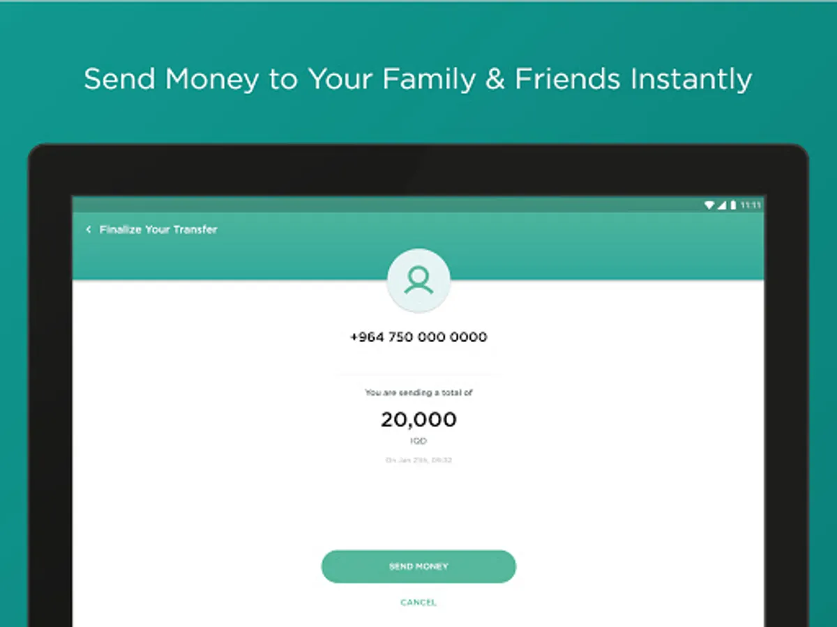 Deposit. Quickly and conveniently deposit your cash using a wide network of merchants all around Iraq. You can do this by simply showing your unique QR code to the merchant. The balance will be updated instantaneously.
