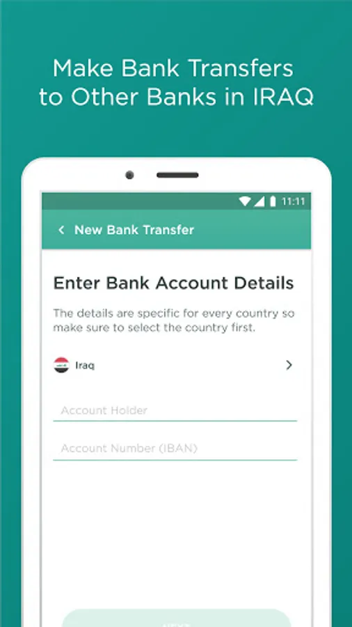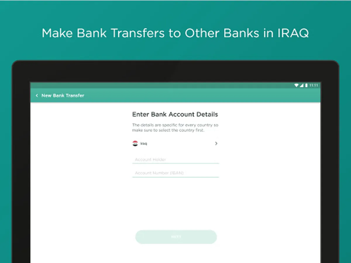 Money transfers. Perform Peer-to-Peer money transfers to other First Iraq Bank account holders. They will get the money within seconds! First Iraqi Bank also allows you to make local and international transfers to other banks.