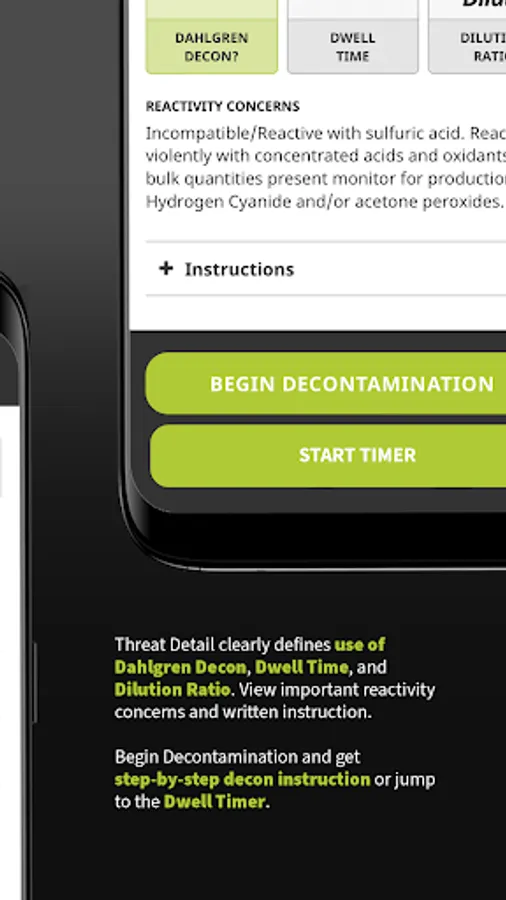 Using the same classic Threat Index, quickly and efficiently determine proper decontamination methods for hundreds of known and emerging threats and execute your mission flawlessly utilizing pictorial instructions and in-app dwell timer.