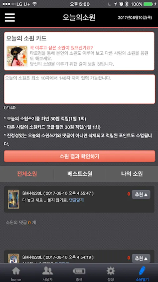 -Wish today's wishes through the tarot. Earn free points even if you wish, and earn free points even if you cheer for others.