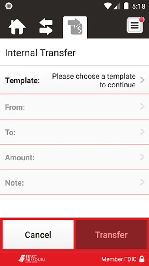 • Approve transactions scheduled through First Missouri Business, including fund transfers, ACH transfers and wire transfers