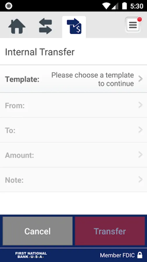 This mobile banking product is for First National Bank USA customers only and is supported by Fiserv, Inc. First National Bank USA does not charge for this service. Message and data rates may apply, check with your smart device service provider for details.