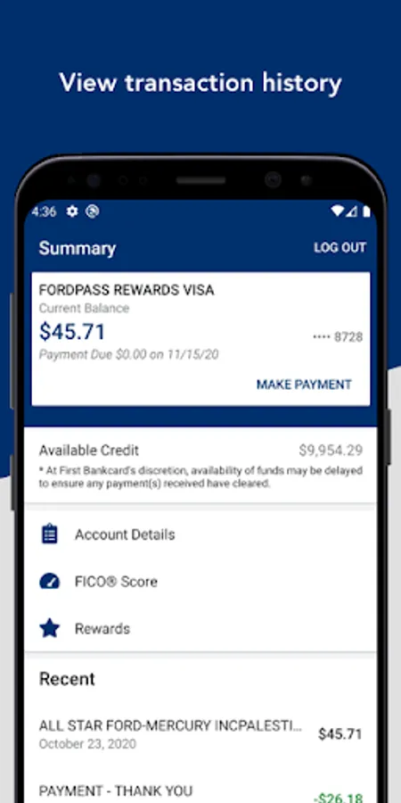 Download the app now and log in with your FordPass Rewards Visa Online username and password.