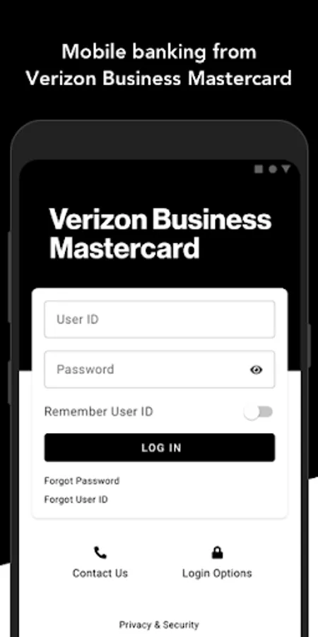 - Verizon Business MasterCard mobile app uses the same security that you use to access your account online
