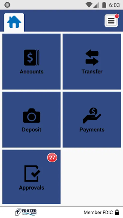 Getting started is easy. Simply download the app and sign on with your Business Online user credentials. [No additional fees apply.1]. For more information about Frazer Bank mobile services, please visit www.frazerbank.com or call us at 580-482-7700.