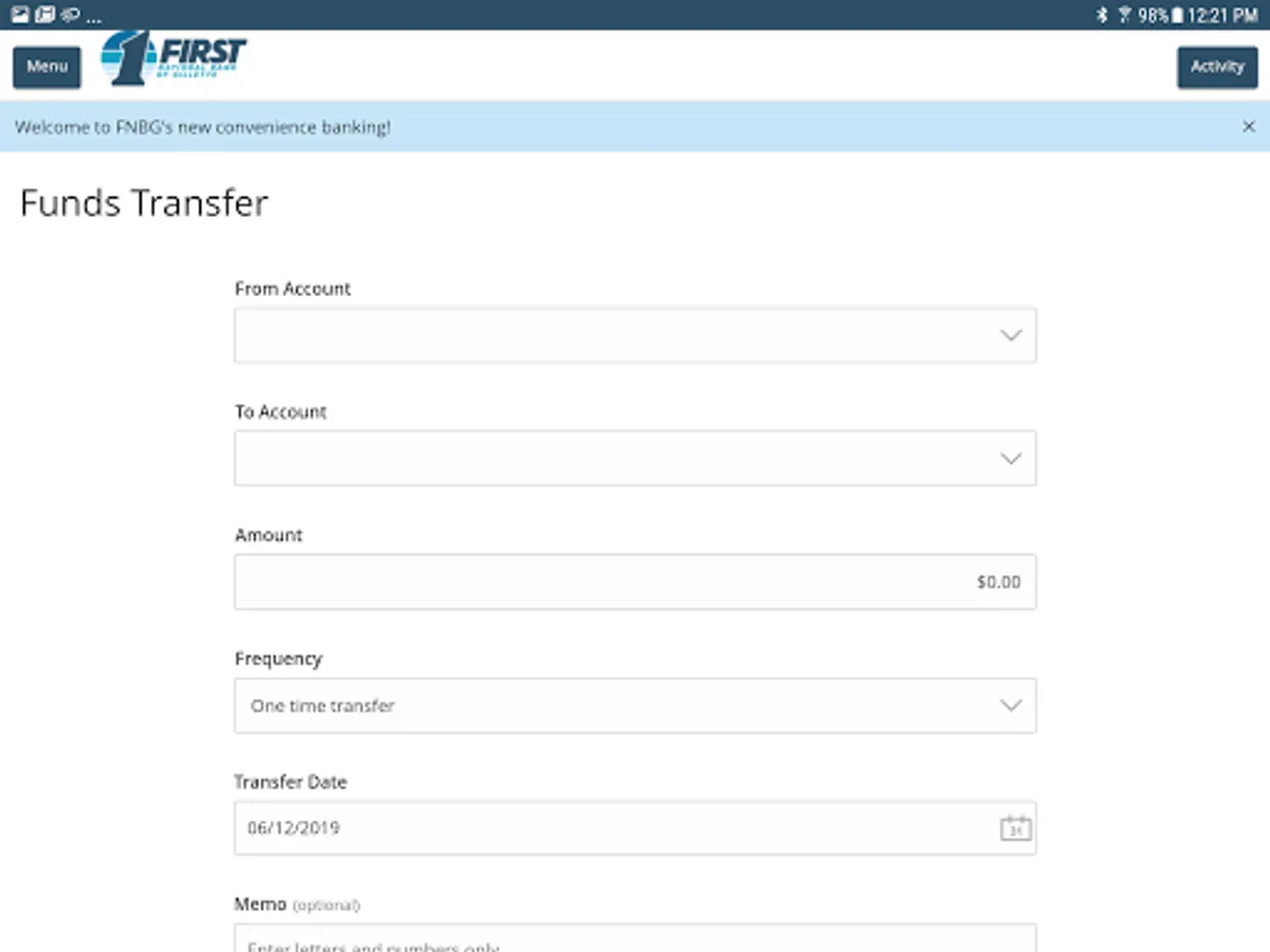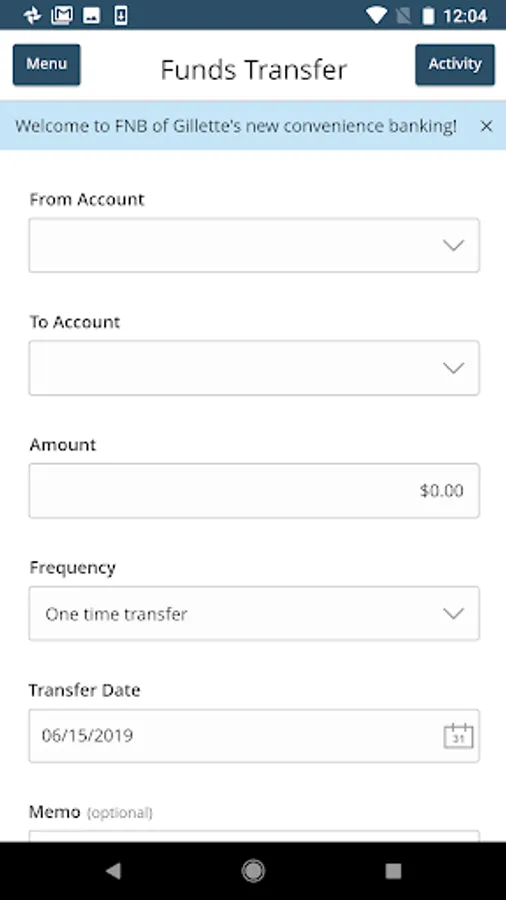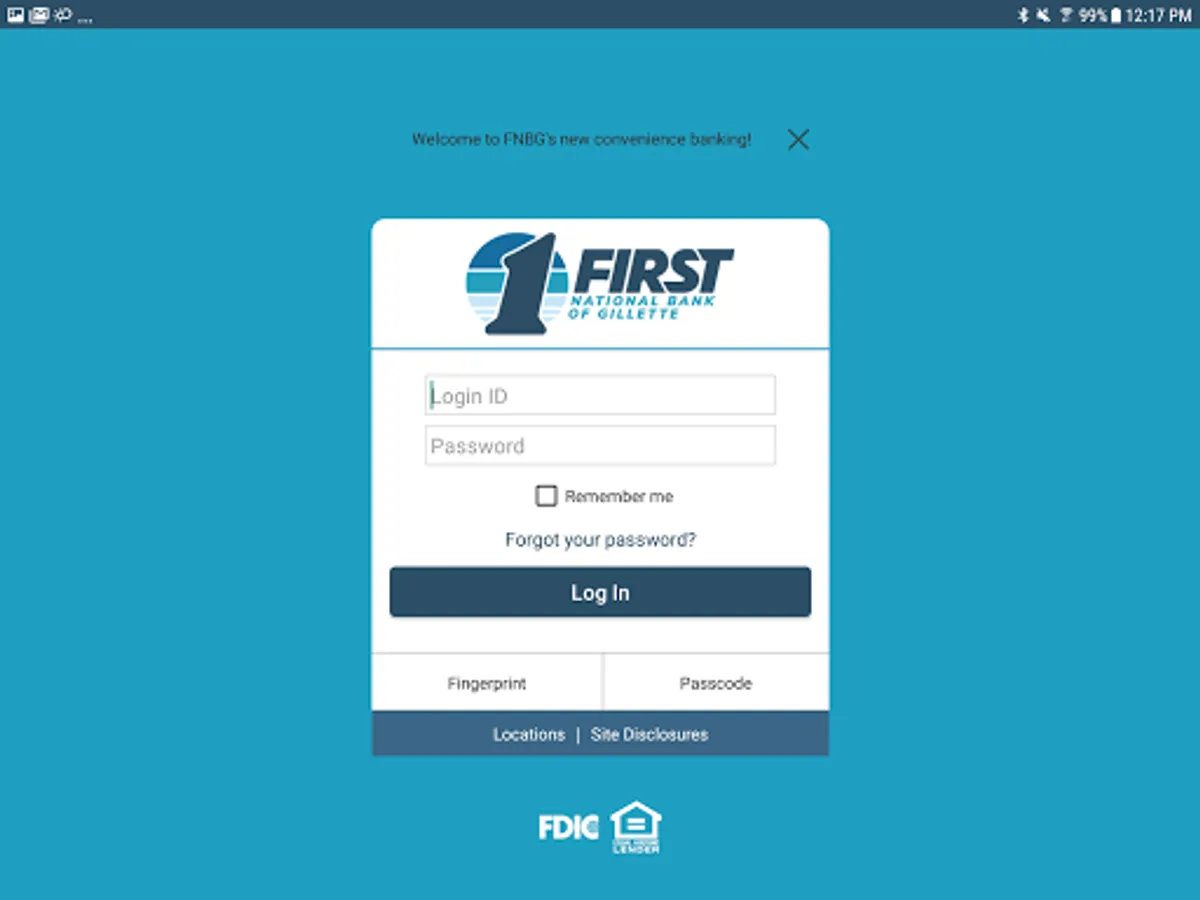 First National Bank of Gillette’s Mobile Banking App is a free, easy to use, secure service which provides 24/7 access to your accounts. Bank from any location, day or night! Your security is our priority- Mobile data transmissions are safeguarded using the latest technology to prevent unauthorized access. First National Bank of Gillette does not transmit your information or store personal, financial data on your phone.