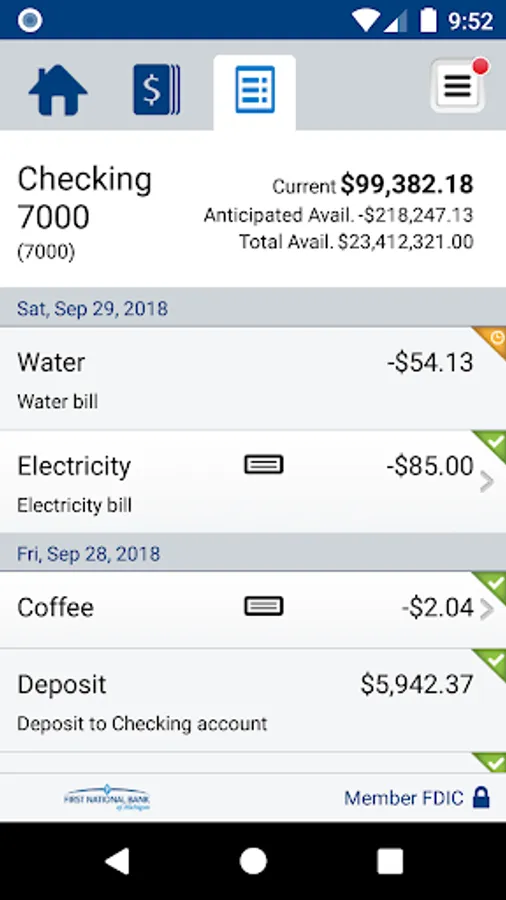 • View recent transactions, including check images