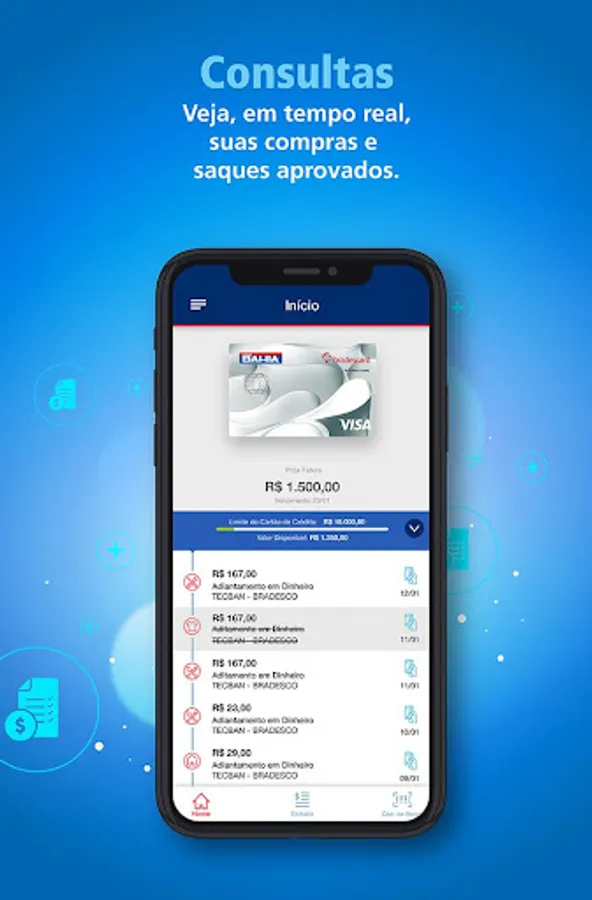 With the Casas Bahia Card app you have access to your credit card information in the palm of your hand.